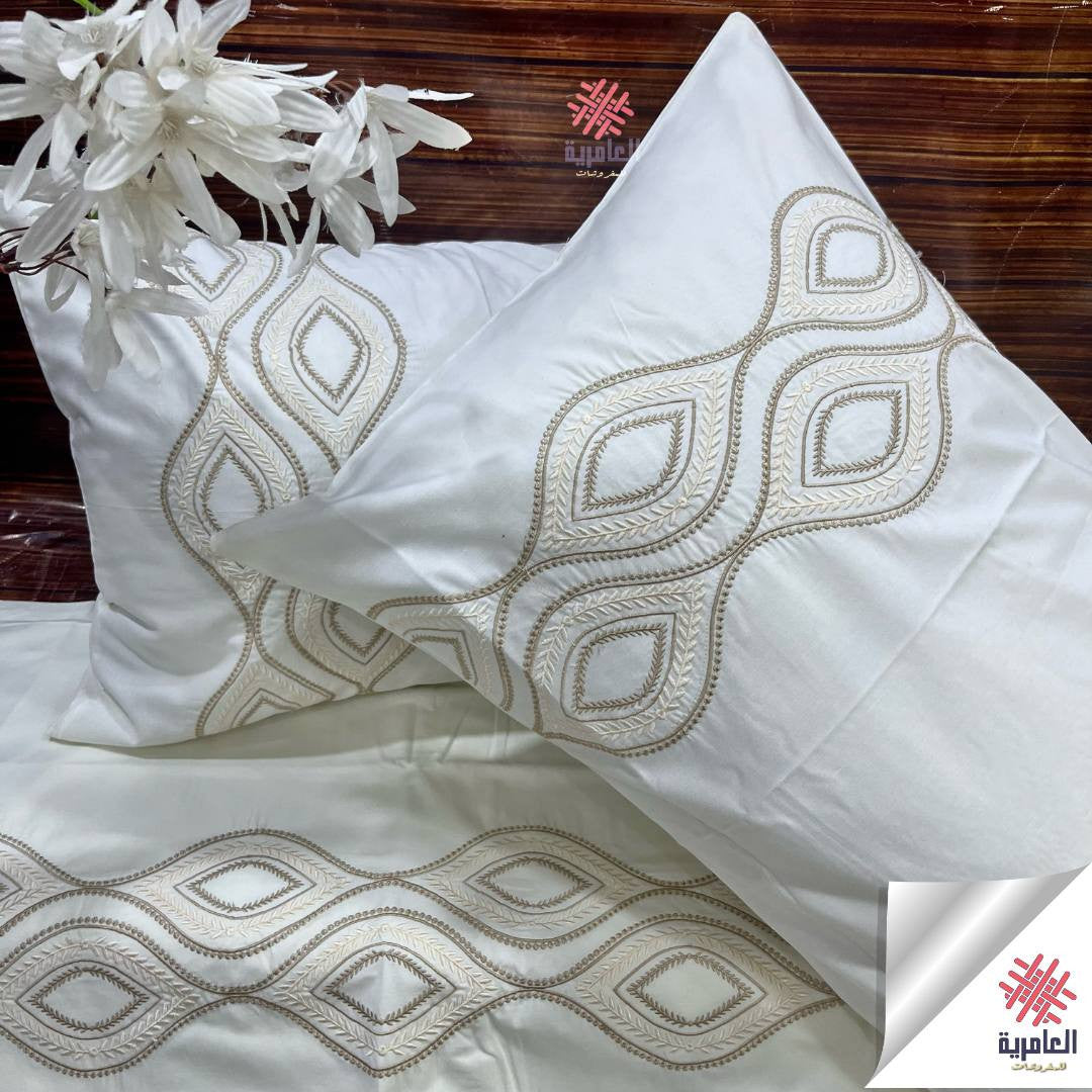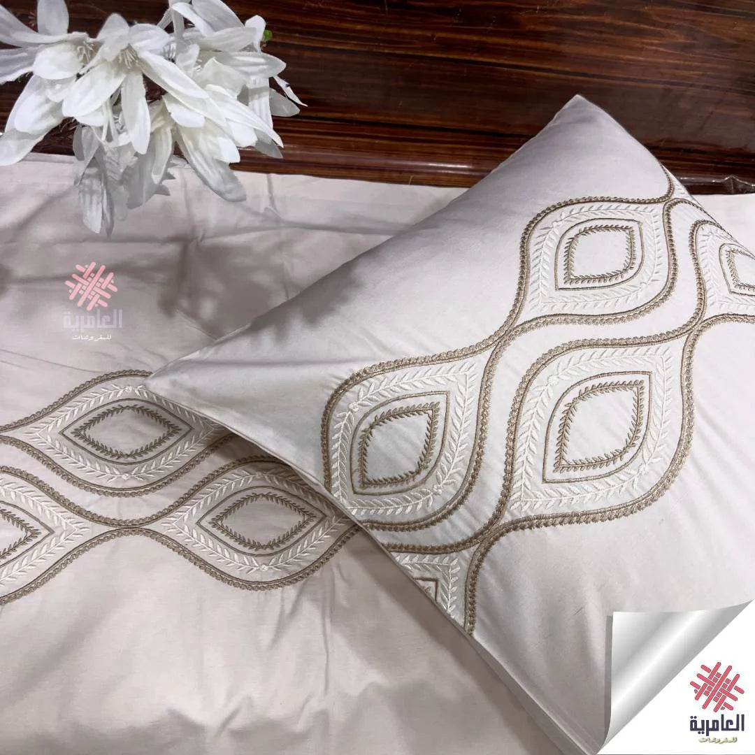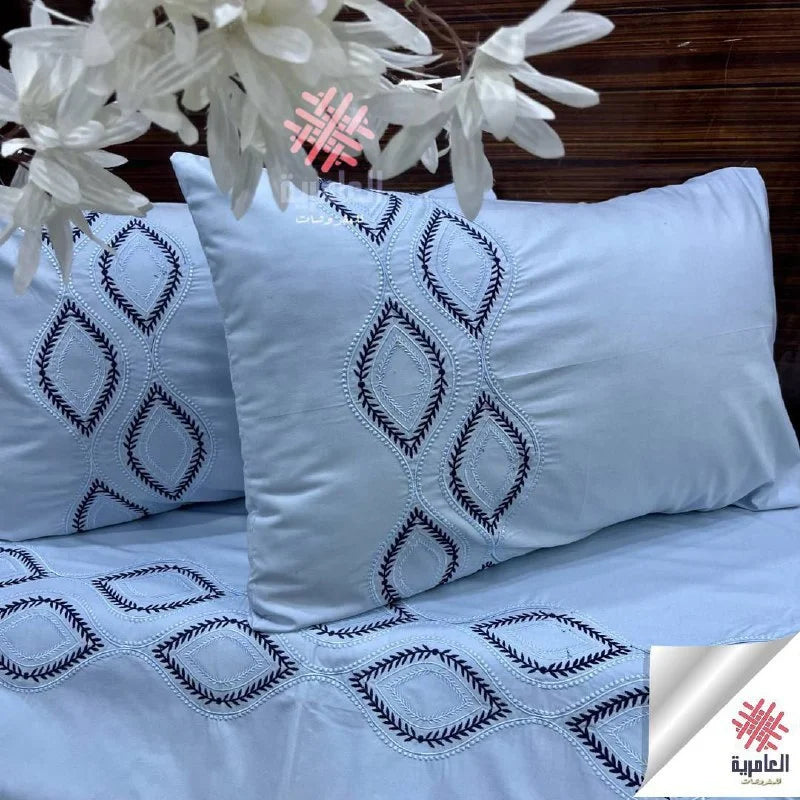 أضيفي لمسة فاخرة لغرفة نومك مع طقم الملاية المطرز بتصميم "العيون"، المصنوع بعناية من قطن 100% لضمان راحة مثالية.